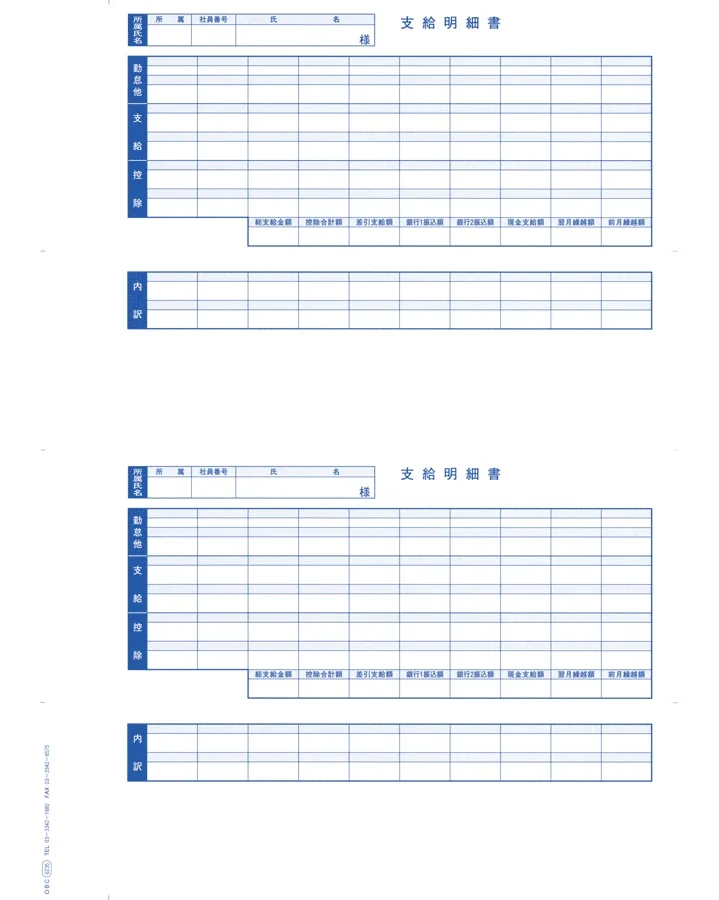 給与奉行V ERP8・給与奉行V ERP、給与奉行 i8・給与奉行 iでは、振込先銀行が4つの場合、上段/下段2つの枠に印字されます。 給与奉行V ERP8・給与奉行V ERPでは、金額が12桁以上の場合、アスタリスク(*)で印字されます。