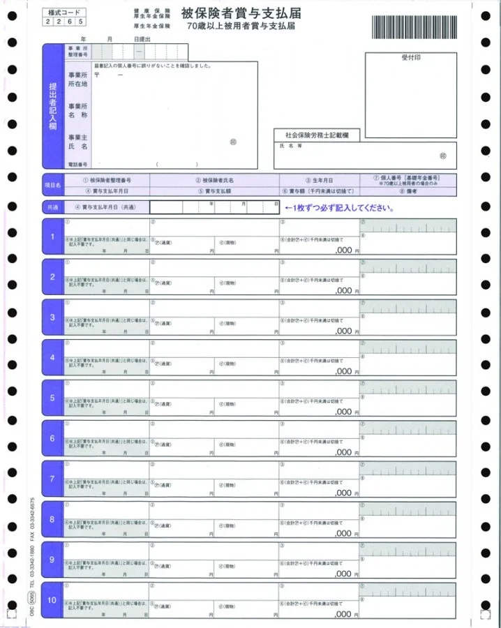 OBC 5065 被保険者賞与支払届 送料無料!