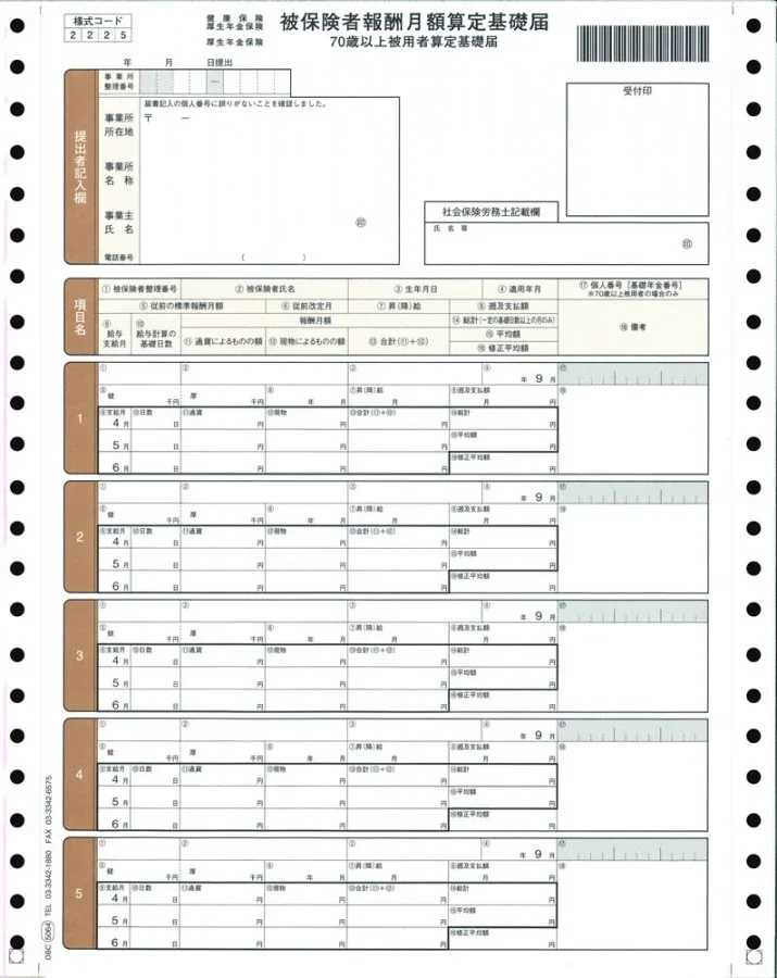 ・健康保険・厚生年金保険被保険者報酬月額算定基礎届