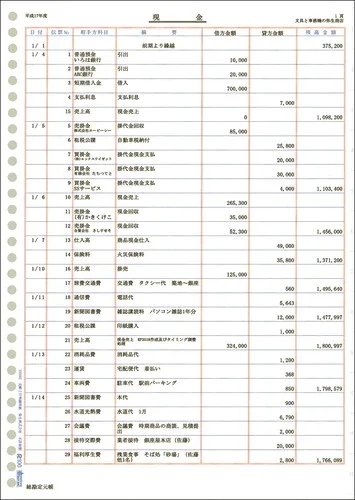 弥生会計用の「元帳用紙-2行明細」です。
