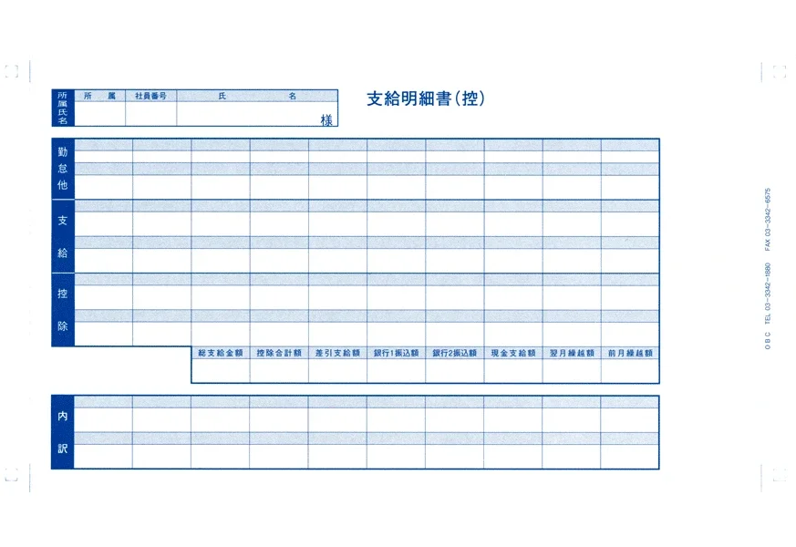 OBC 6036 密封式支給明細書(内訳項目付) 送料無料!
